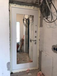 Входная дверь Лабиринт LINE WHITE - Зеркало 18 Белое дерево