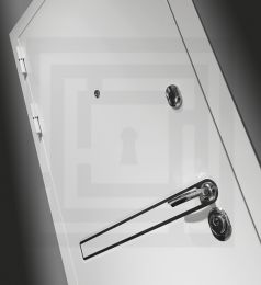 Металл с покрытием "Шагрень" белая, зеркальная вставка из нержавеющей стали