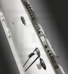 Металл с покрытием "Шагрень" белая, зеркальная вставка из нержавеющей стали