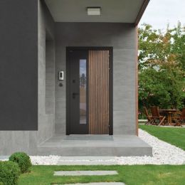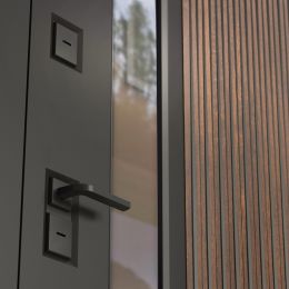 Входная дверь с терморазрывом и стеклопакетом Лабиринт Скандия - Черный кварц / Белый софт