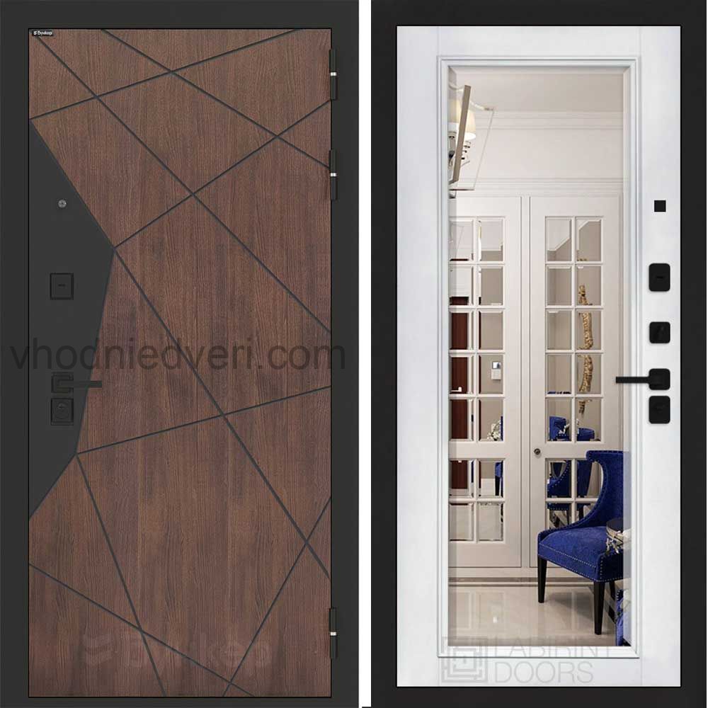 Входная дверь Бункер BN-14 - Зеркало Белый софт, фацет с багетом 16мм