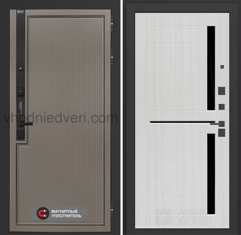Входная дверь Лабиринт Лаб 1 Про - 02 Сандал белый стекло черное