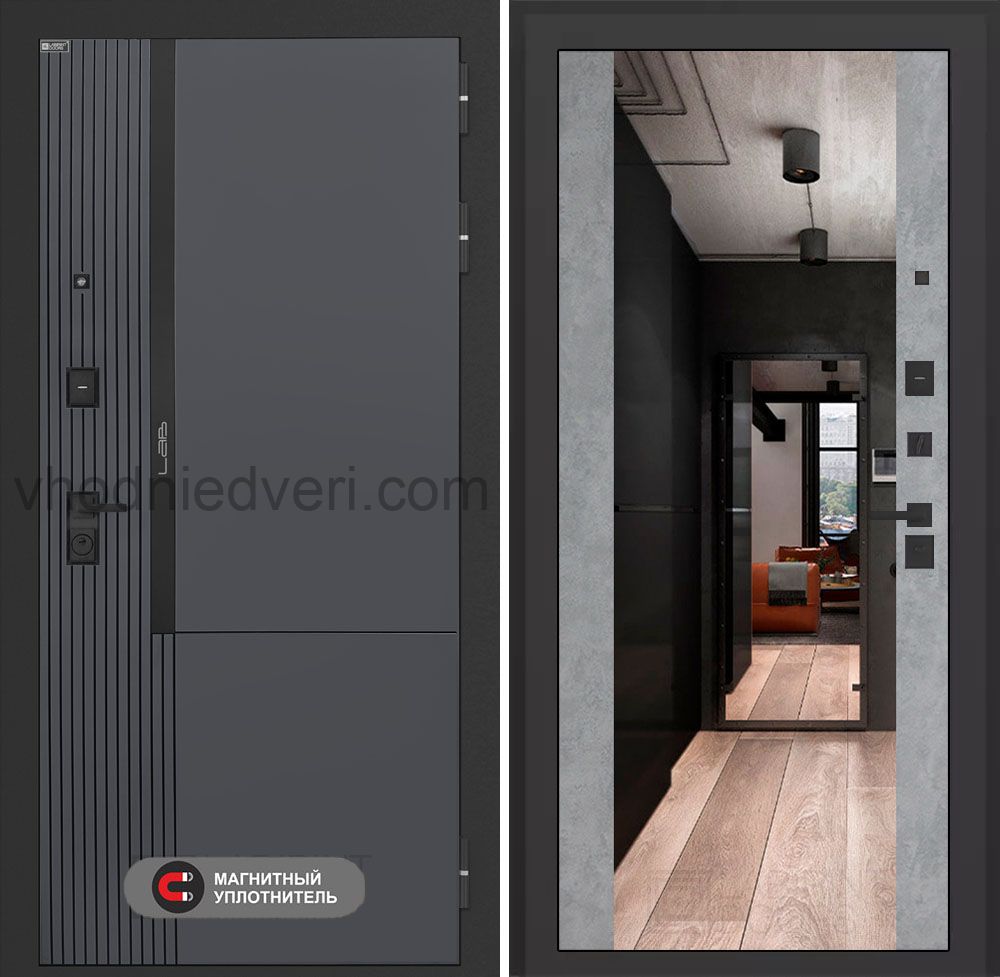 Входная дверь Лабиринт Лаб 2 Про - Зеркало максимум Бетон светлый