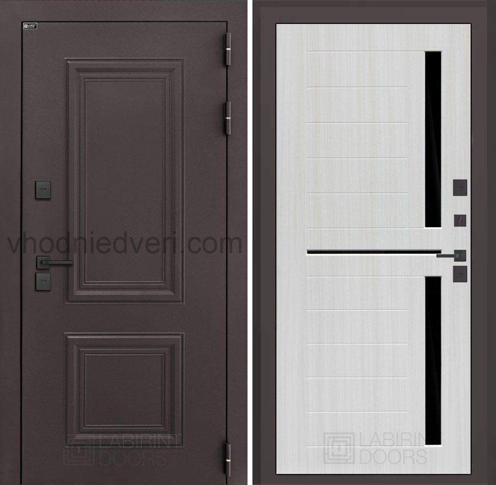 Входная дверь Лабиринт Полярис Лайт - 02 Сандал белый, стекло черное с терморазрывом