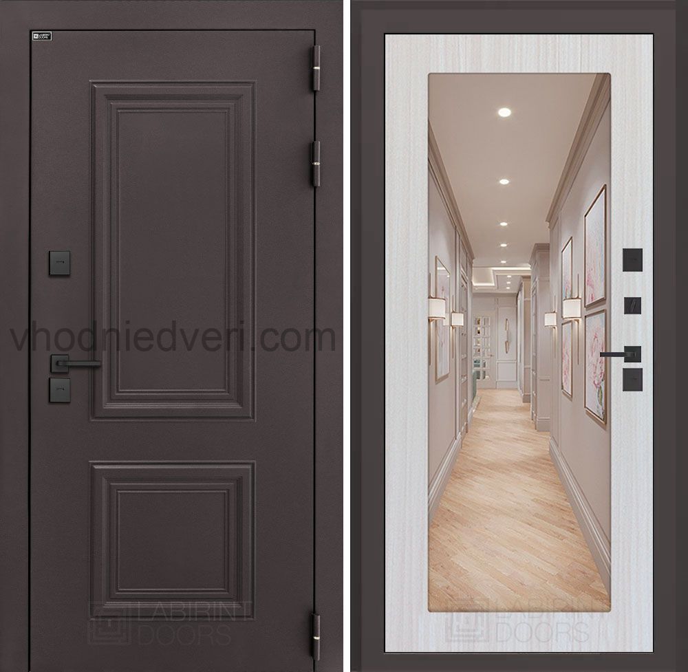 Входная дверь Лабиринт Полярис Лайт - 18 Зеркало Сандал белый с терморазрывом