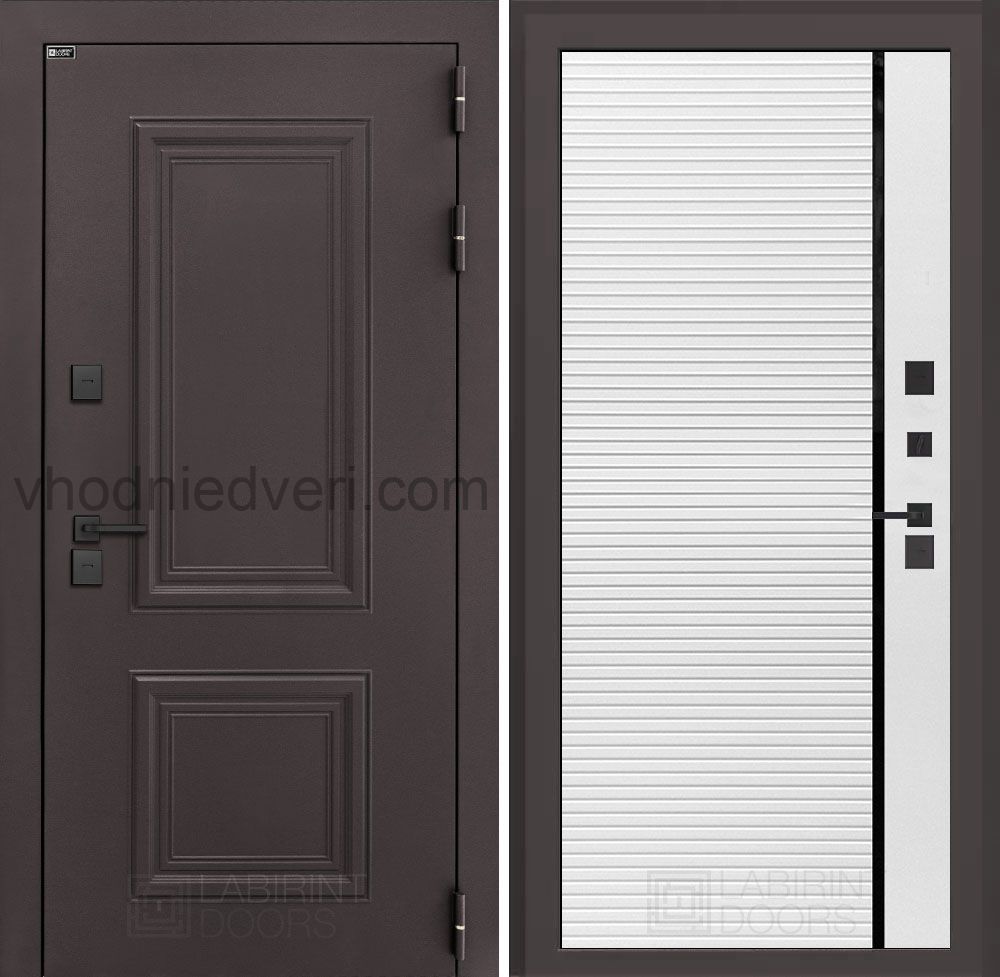 Входная дверь Лабиринт Полярис Лайт - 22 Белый софт, черная вставка с терморазрывом