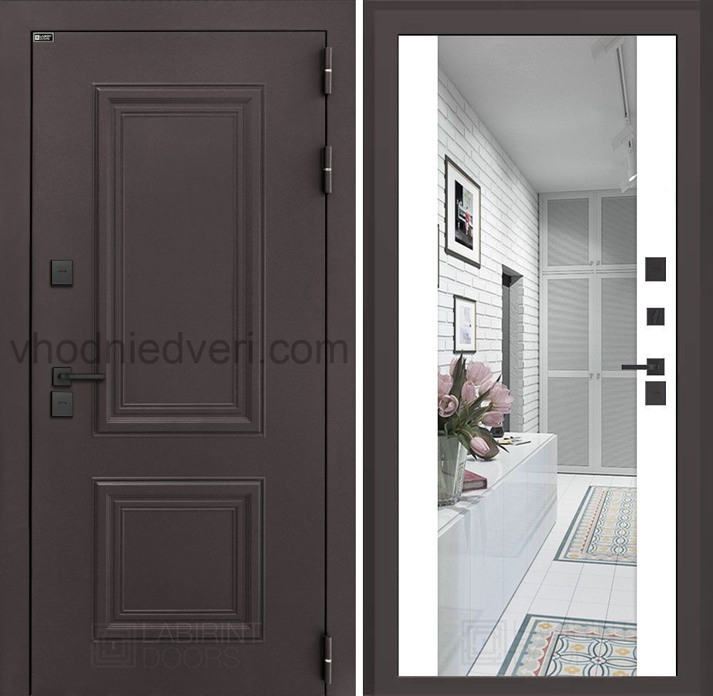 Входная дверь Лабиринт Полярис Лайт - Зеркало максимум Белый софт с терморазрывом