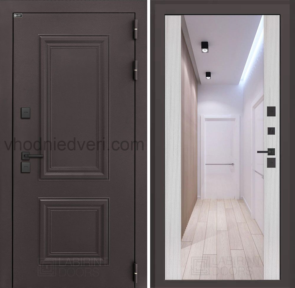 Входная дверь Лабиринт Полярис Лайт - Зеркало максимум Сандал белый с терморазрывом