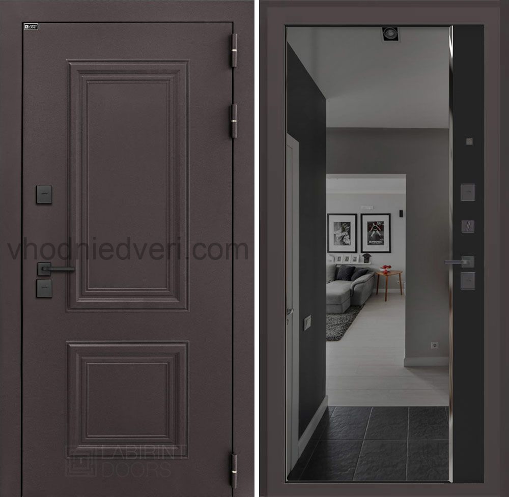 Входная дверь Лабиринт Полярис Лайт - Зеркало панорама с тонировкой Черный кварц с терморазрывом