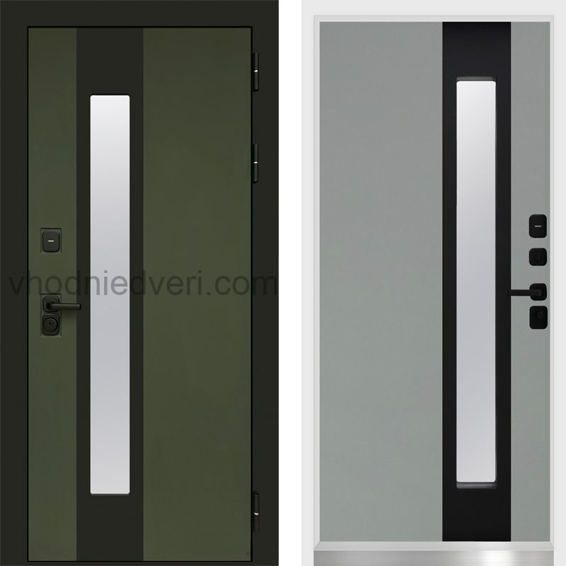 Входная дверь Termo-door Арктика Грин - Серая с терморазрывом и стеклопакетом, белый короб