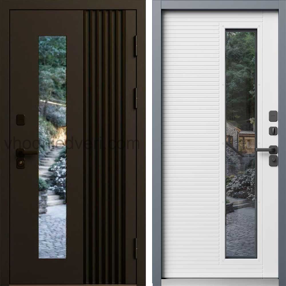 Входная дверь Termo-door Фортис Муар коричневый 8019 - Белый софт с терморазрывом и стеклопакетом
