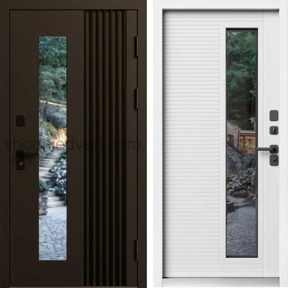 Входная дверь Termo-door Фортис Муар коричневый 8019 - Лиственница, белый короб с терморазрывом и стеклопакетом