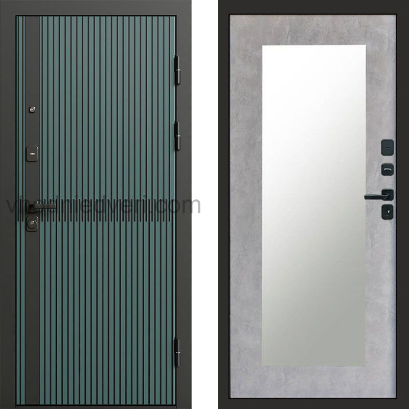 Входная дверь Termo-door Граунд velutto verde - Зеркало триумф Бетон светлый