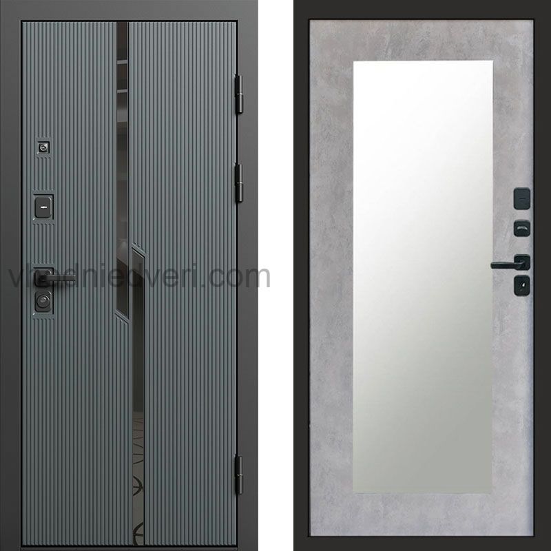 Входная дверь Termo-door Прайм Графит - Зеркало триумф Бетон светлый